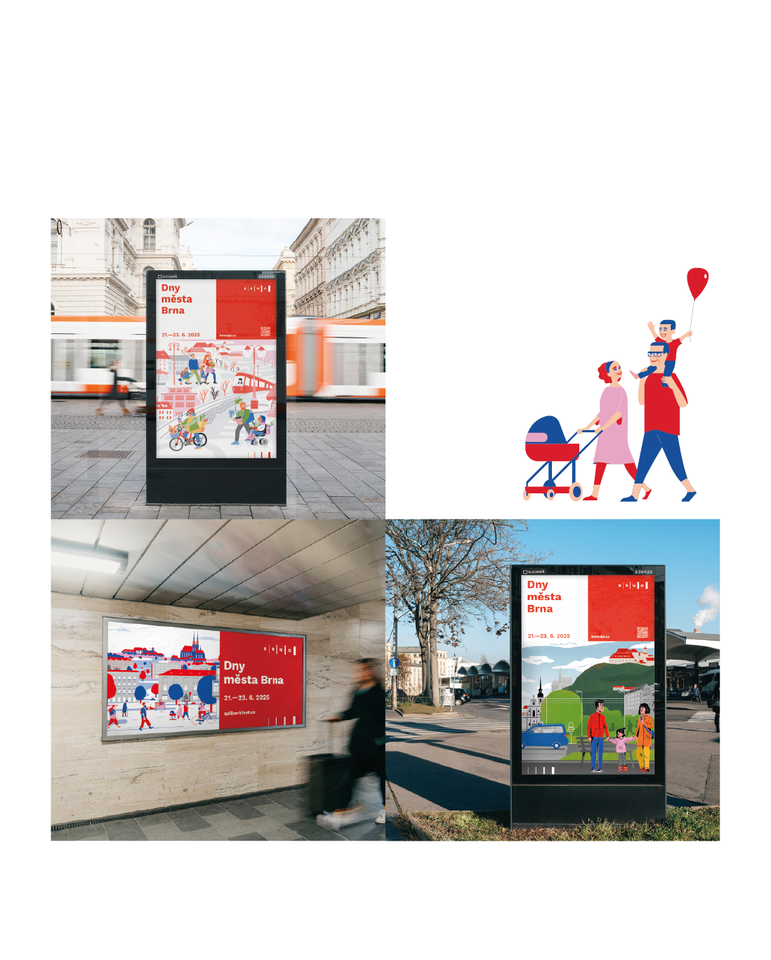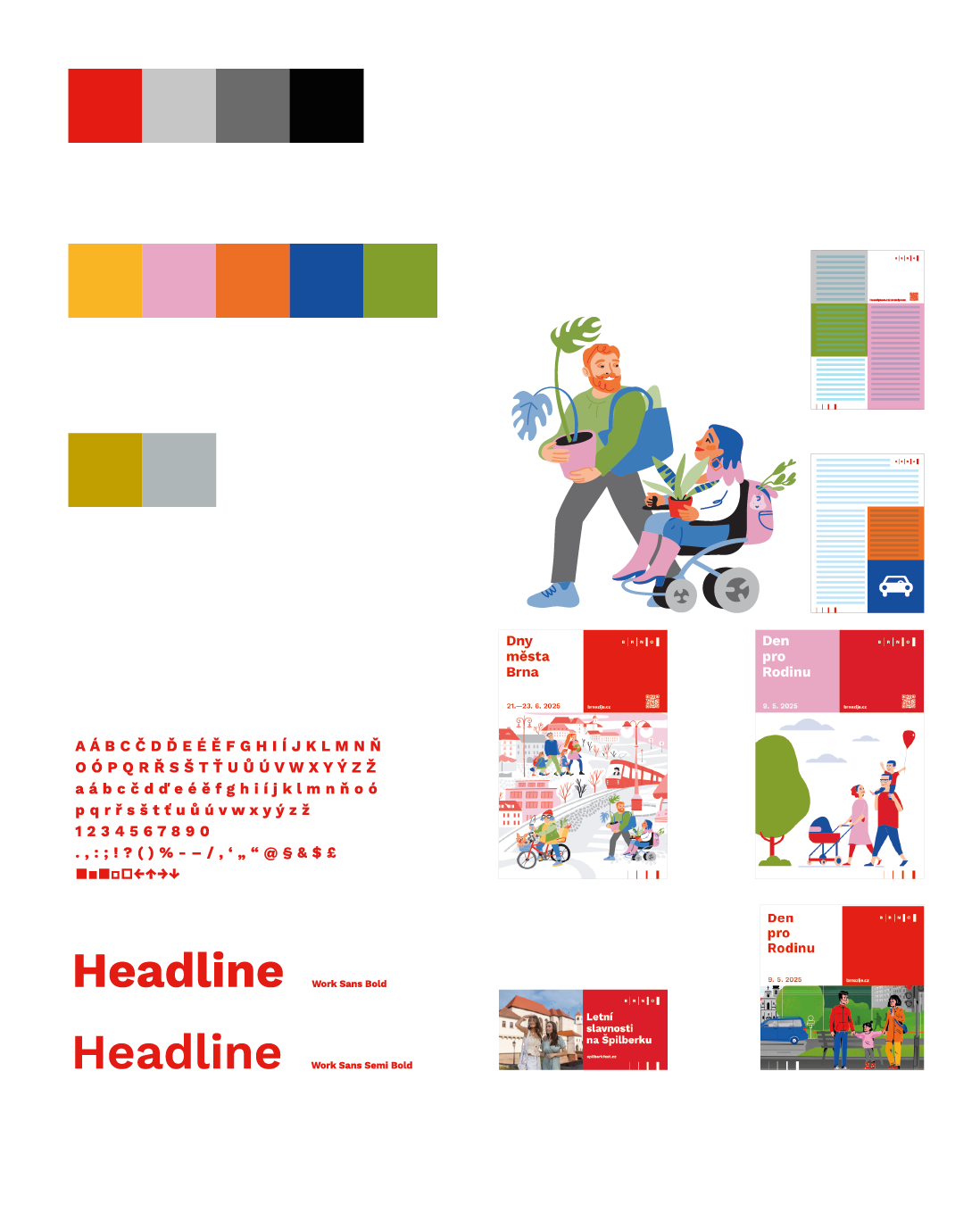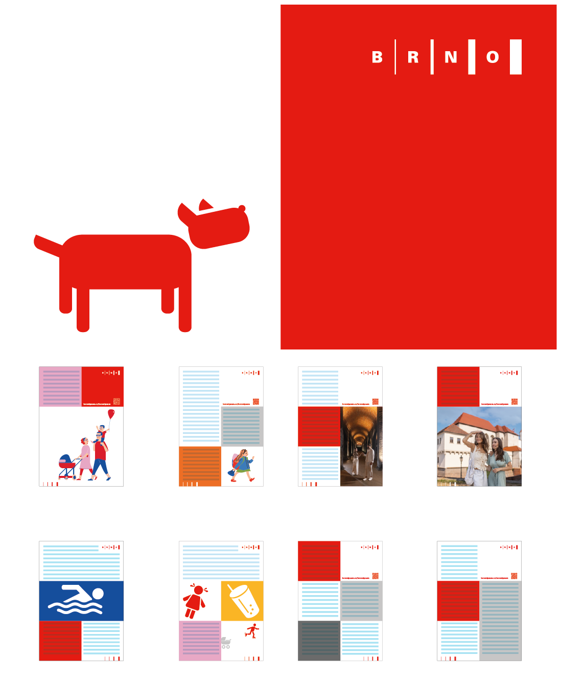 Revize vizuálního stylu města Brna proběhla v roce 2024 tedy 20 let od doby co jsem logo a jvs navrhla. Byla jsem ráda, že pro revizi vizuálního stylu mě město opět oslovilo. Vytvořit nová pravidla a rozšířit vizuální styl města pro širší užití byla rozsáhlá práce. Byla rozšířena barevnost, hlavní písmo se změnilo, dopracovala jsem sadu ikon. Výrazným prvkem jvs se nyní budou stávat i ilustrace od 3 vybraných ilustrátorů.